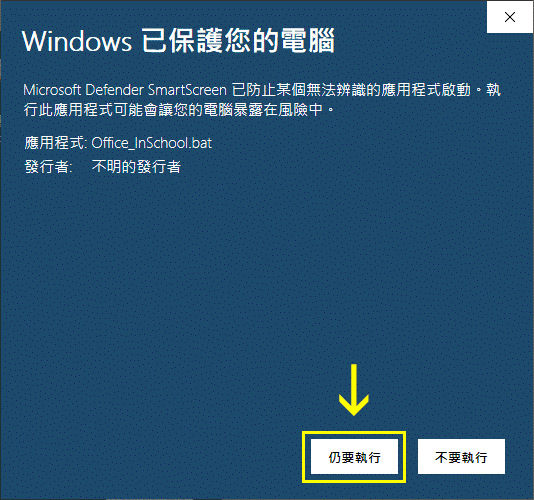 二、第一次執行啟用檔會有彈出視窗提醒,點選【其他資訊】,接著再點選下方【仍要執行】,就會開始執行啟用程式。
